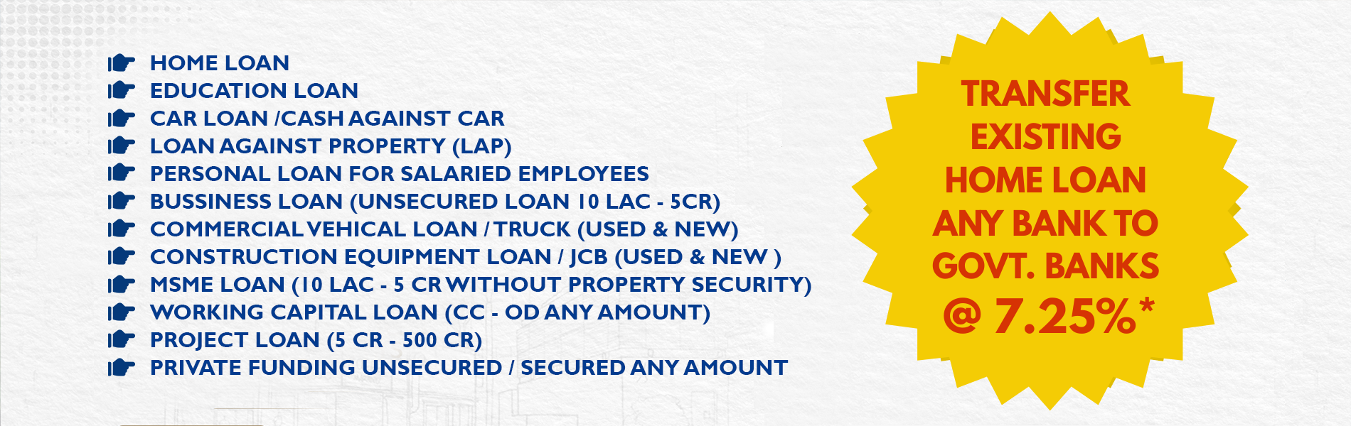 We will fulfill your loan requirement as per your need from 1 Cr to 25 Cr with in 7 Working Days after completing the document required for your loan.